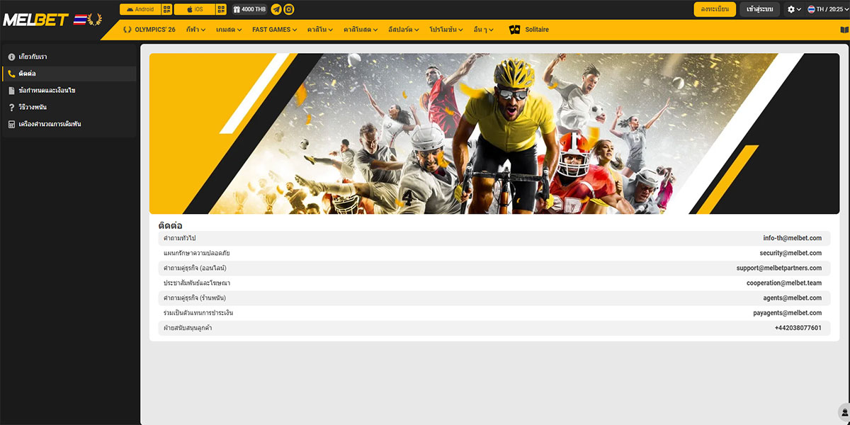 Melbet Casino เป็นแพลตฟอร์มการพนันออนไลน์ชื่อดังที่ให้ผู้เล่นชาวไทยเข้าถึงเกมคาสิโนที่หลากหลายและตัวเลือกการเดิมพันกีฬาในที่เดียว แพลตฟอร์มรองรับผู้ใช้จากประเทศไทยด้วยอินเทอร์เฟซที่ใช้งานง่าย การลงทะเบียนที่รวดเร็ว และเว็บไซต์ที่เหมาะกับมือถือซึ่งทำงานได้อย่างราบรื่นทั้งบน Android และ iOS ผู้เล่นสามารถเลือกเกมได้นับพันรายการ รวมถึงสล็อต โต๊ะดีลเลอร์สด เกมไพ่คลาสสิก และเกมแนว Crash ทั้งหมดขับเคลื่อนโดยผู้ให้บริการซอฟต์แวร์ที่มีชื่อเสียง Melbet ยังมีตลาดเดิมพันกีฬาที่ครอบคลุม ครอบคลุมฟุตบอล บาสเกตบอล เทนนิส และกิจกรรมระดับนานาชาติและระดับภูมิภาคอีกมากมาย มักมาพร้อมกับราคาต่อรองที่แข่งขันได้ ผู้เล่นชาวไทยได้รับประโยชน์จากวิธีการชำระเงินที่หลากหลาย รวมถึงกระเป๋าเงินอิเล็กทรอนิกส์ยอดนิยมและตัวเลือกธนาคาร ช่วยให้ฝากและถอนเงินได้รวดเร็ว ในขณะที่มาตรการรักษาความปลอดภัย เช่น การเข้ารหัสข้อมูล ช่วยปกป้องข้อมูลส่วนบุคคลและข้อมูลทางการเงิน ฝ่ายบริการลูกค้าพร้อมให้บริการตลอด 24 ชั่วโมง และโปรโมชั่น โบนัส และข้อเสนอความภักดีเป็นประจำช่วยเพิ่มมูลค่าเพิ่มเติมสำหรับผู้ใช้ที่ต้องการแพลตฟอร์มคาสิโนออนไลน์ที่มีฟีเจอร์ครบครันและมีความเคลื่อนไหวอยู่เสมอ